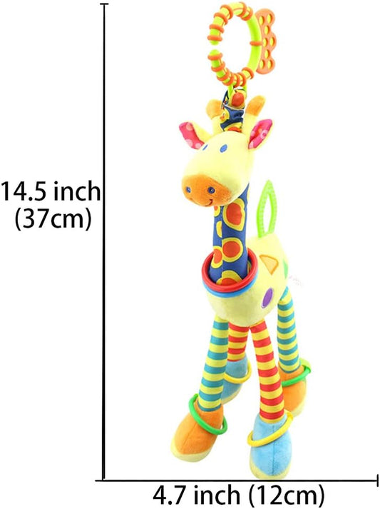 Baby Toy 0-6 Months, Baby Car Seat Stroller Toy Teething Toy, Soft Giraffe Hanging Toy with Sound and Teether for 0-3 Years Old (Blue and Yellow)