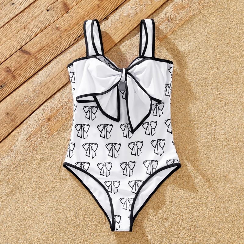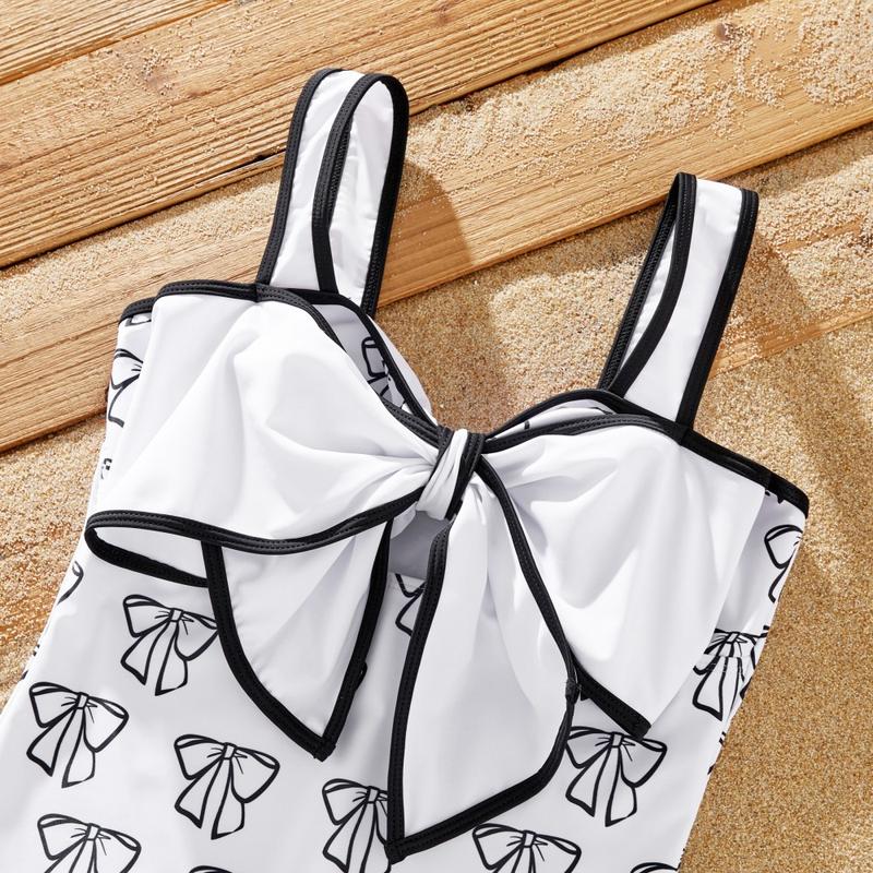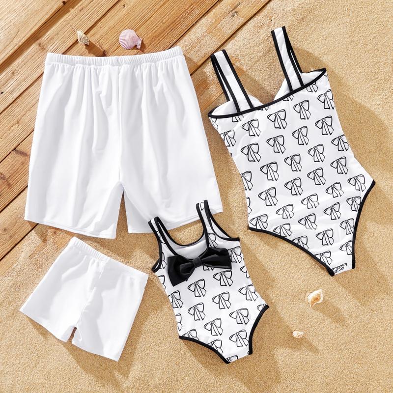 - Product Introduction: Elegant white one-piece swimsuit with bow design for the whole family. Perfect for outdoor activities, vacations, and parties.