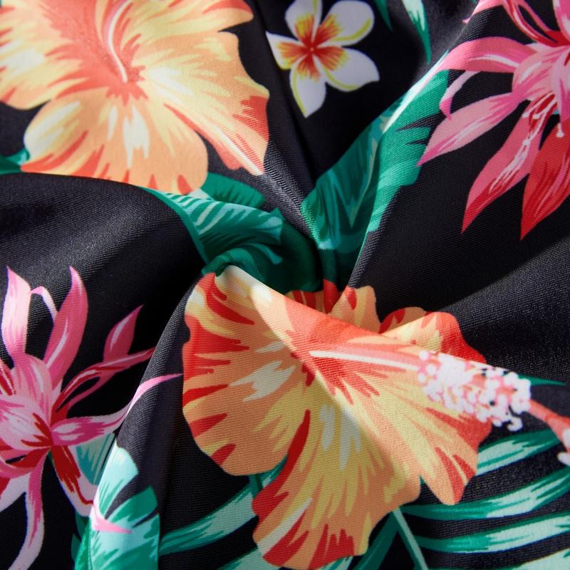 Product Introduction: Family matching swimsuits featuring tropical plant prints, perfect for vacation vibes.